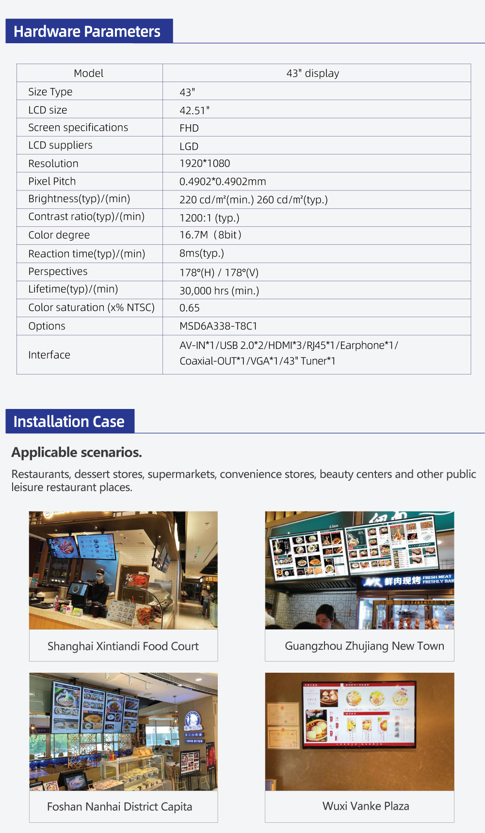 Current position:Home > Products > Shinage Intelligent Information Demonstration System > Shinage 43-inch intelligent electronic menu board